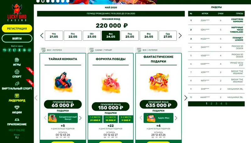 | Бонус: | До 55% от проигранного |